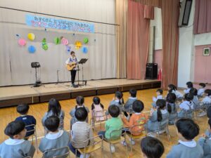 シンガーソングライターの歌を聴く機会は、本当に貴重な経験です。(なかなかプロの歌声を生で聞けないですよね)翼taskuさんの歌は、子どもたちの心に響いたことでしょう。翼taskuさん、毎年幼稚園に来ていただき、ありがとうございます!!