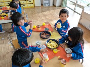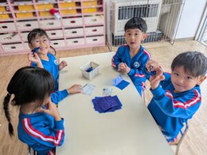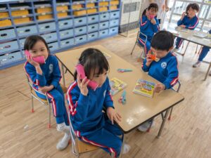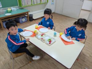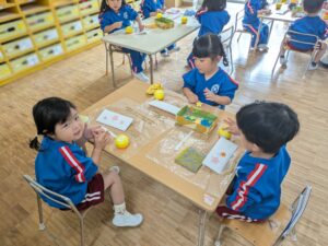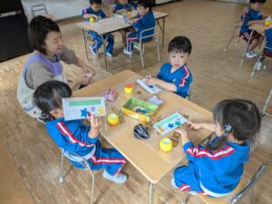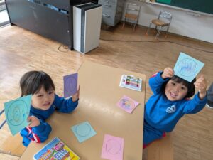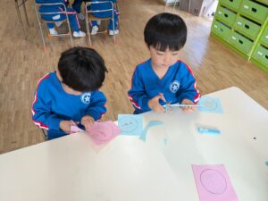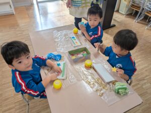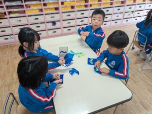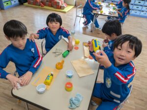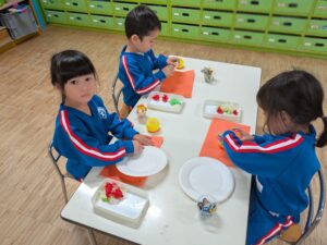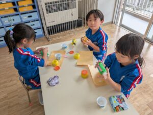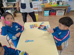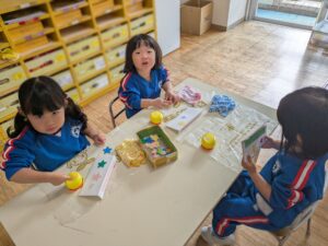 10月31日のお店ごっこに向けて、品物作りに励んでいる子どもたち。