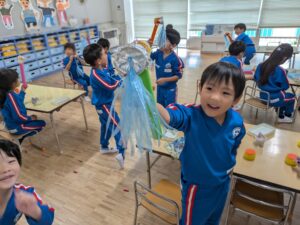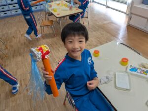 クラスでどんなお店にするかを話し合い、そして品物も子どもたちのアイディアを取り入れながら作っています!
