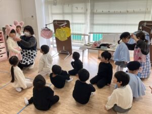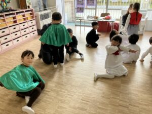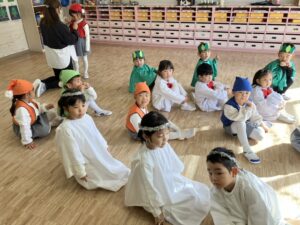 年中少さんがお客さんになって、年長さんの素敵な姿を見ました。