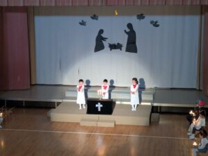 イエス降誕劇では、演技に力が入っている子が多く、見ごたえがありました。