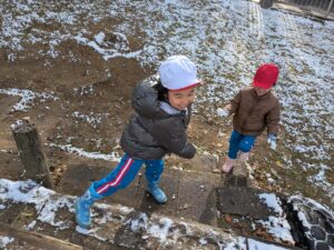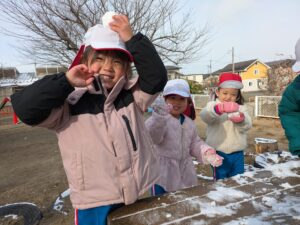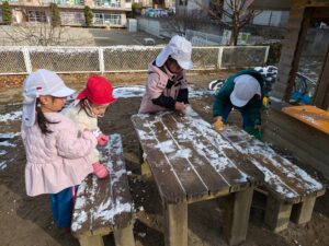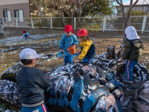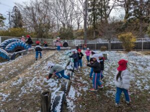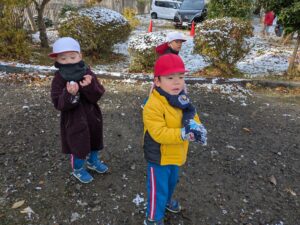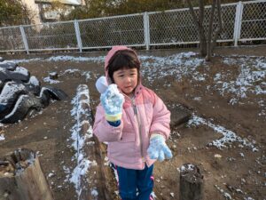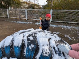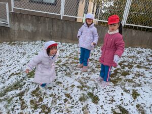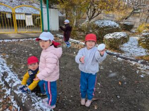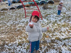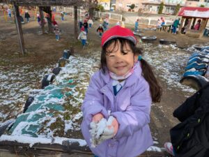 今年度初めての雪遊びに大はしゃぎの子どもたち!
