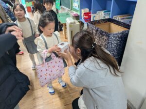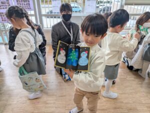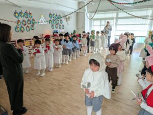 保護者の皆様には、これまで体調管理や気持ちのフォローなどをしていただき、ありがとうございました。南光シオン幼稚園148名お休みなしの全員でクリスマス会を行えたこと本当にうれしく思います。神さまが見守ってくださったことに感謝をし、残り少ない2学期ですが、みんなで楽しい時間をすごしていきたいと思います。