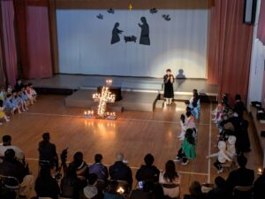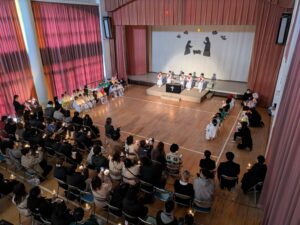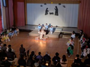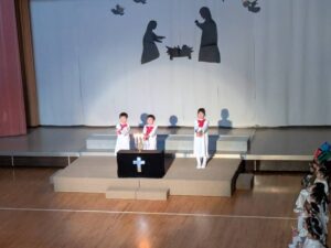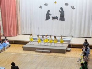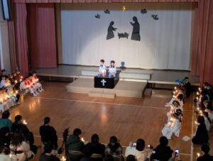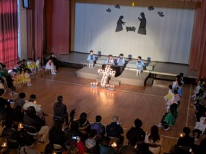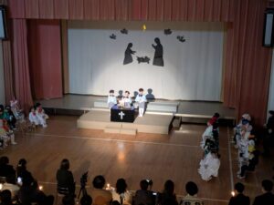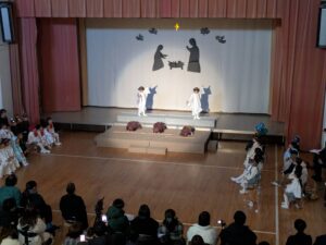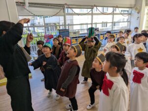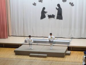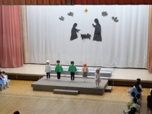 一人一人が神さまから与えられた大切な役を心を込めて演じている姿にたくさんの感動をもらいました。子どもたちの頑張りは、神さま・イエス様にも届いたと思います。どの学年も最後に沢山拍手をもらうと、みんなの表情がとても嬉しそうで、達成感に溢れていました。みんなでイエス様のお誕生を心からお祝いし、イエス様が生まれてきてくれたことに感謝を捧げられた素晴らしいクリスマス会となりました。