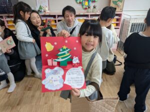 クリスマスカードを受けると、子どもたちはにっこり!!