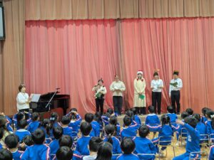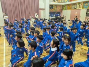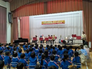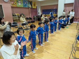 子どもたちもこの日をとても楽しみしていました。ワンダー(預かり保育)の時にホールで練習をしているが聞こえていたので「何を弾いているのかな…」と気になっていたようです。