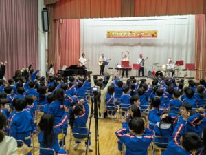 リコーダー、ベース、アコースティックギター、エレキギター、ピアノ、ドラム…と、どの楽器も格好よくて、子どもたちは興味津々でした!