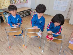 昨日は…幼稚園を大そうじ!!2学期たくさん遊んだお部屋など、いろいろな場所をみんなで力を合わせてきれいにしました!