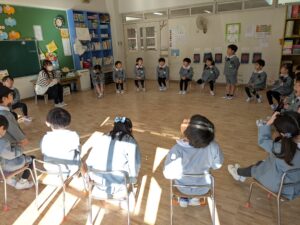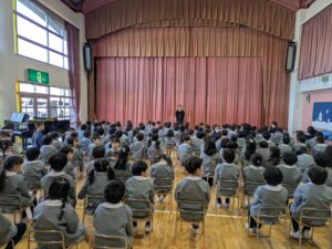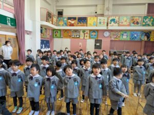 終業式では、楽しかったこと、頑張ったことなどを振り返ったり、冬休み中のお約束もしました。