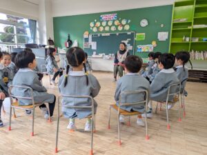 クラスでは、冬休みの思い出を一人ひとり発表しました。