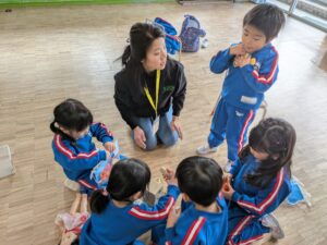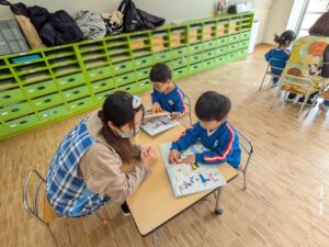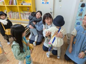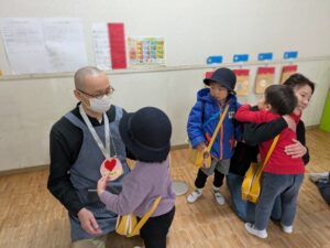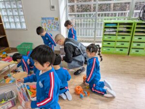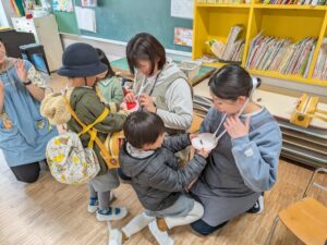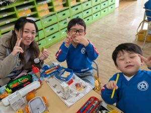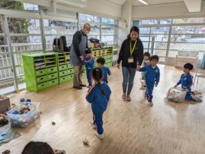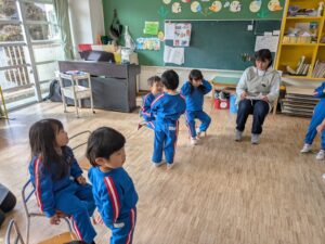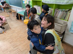 年少組さんは、大好きなお母さんお父さんがそばにいることで、少し甘えん坊になる可愛い姿もありましたが、とても嬉しそうに「楽しかった!!またきてね!」と喜ぶ姿がありました。「先生」としてお母さん、お父さんが来てくれたのが、とっても嬉しかったようです。