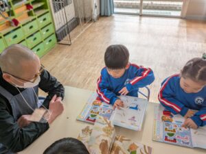今週は、年少組の保護者の皆様が、一日先生体験をしてくださいました。