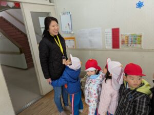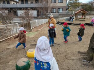 外に遊びに行く前に、整列の掛け声をしてくれています。