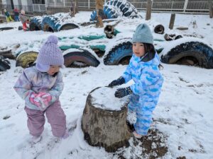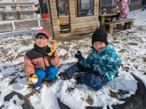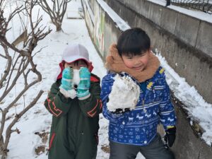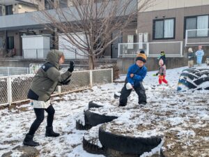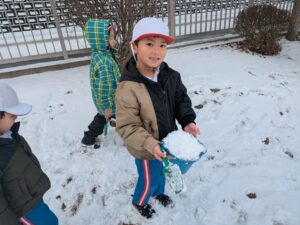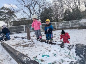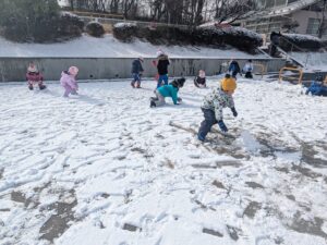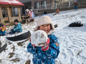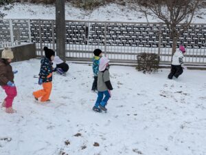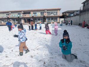 昨日は雪が降り積もり、子どもたちは、大喜び!!