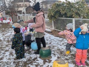 みんな笑顔で雪遊びを十分に楽しんだ子どもたちでした!!