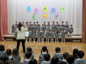 うたの会は、入園してから歌ってきた大好きな歌を みんなの心を一つにして 披露する幼稚園最後の発表会です。今日、初めてたくさんのお客さんを前で歌った子どもたち。少し緊張していましたが「さすが年長さん」という格好良い姿を見せてくれました。
