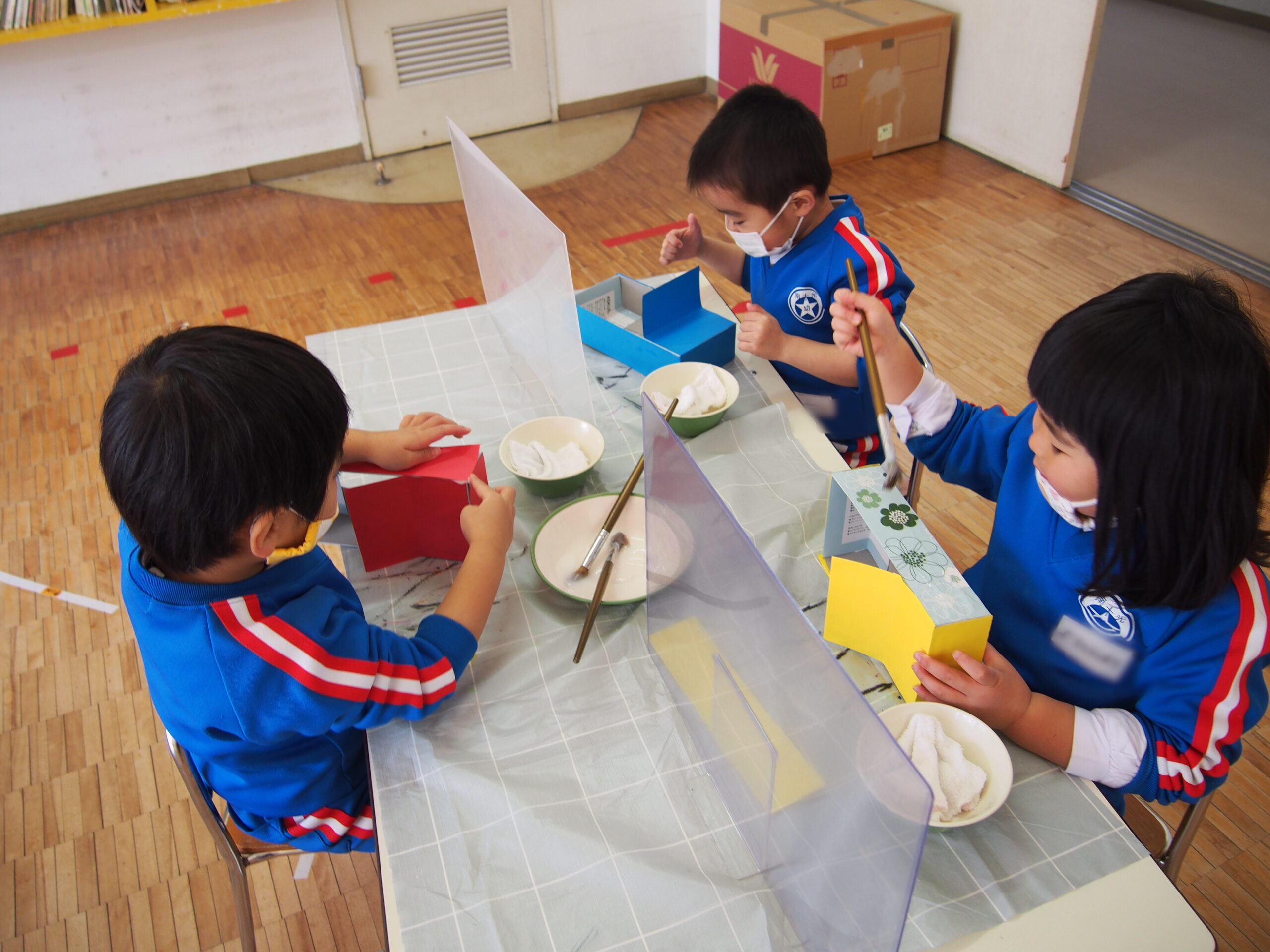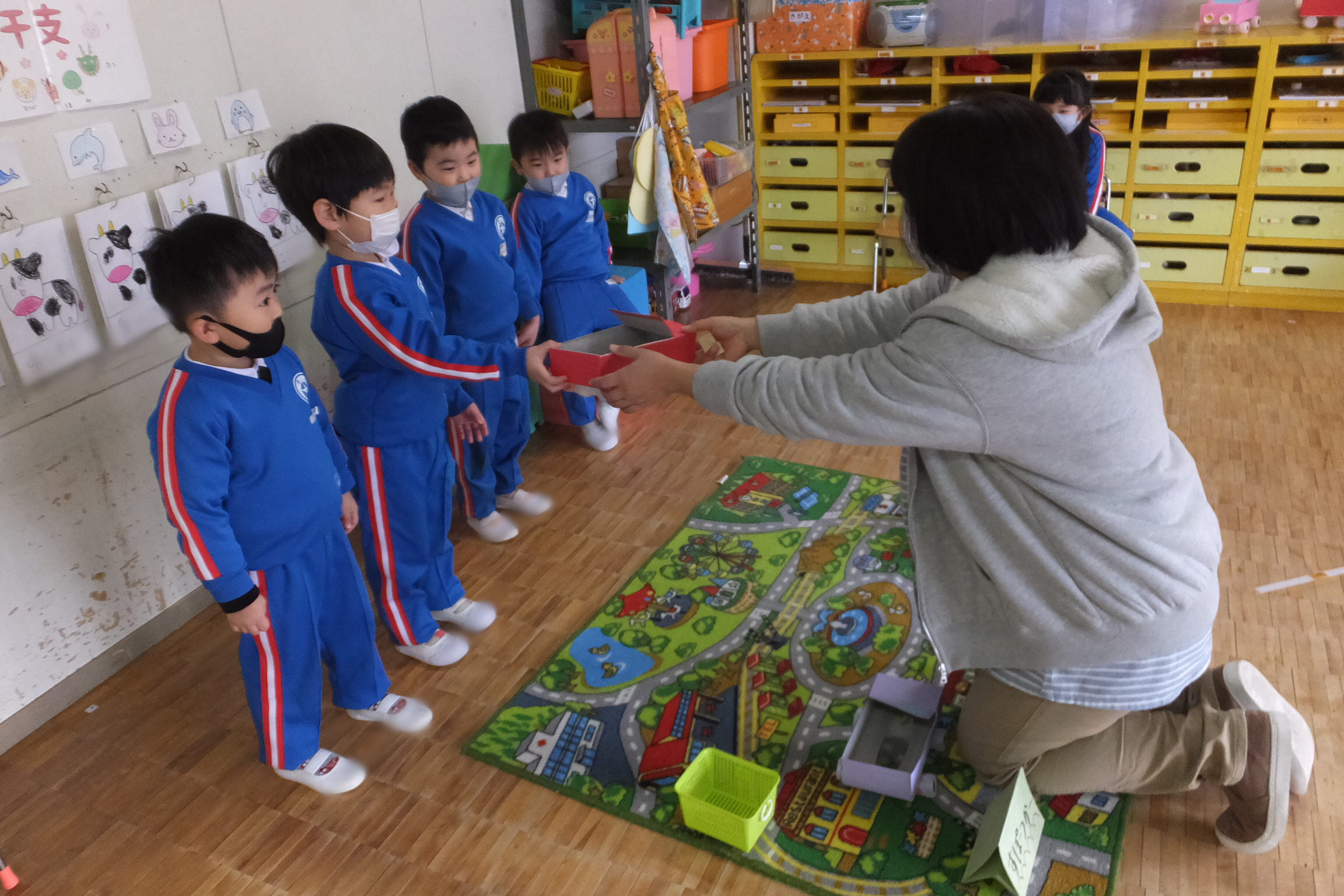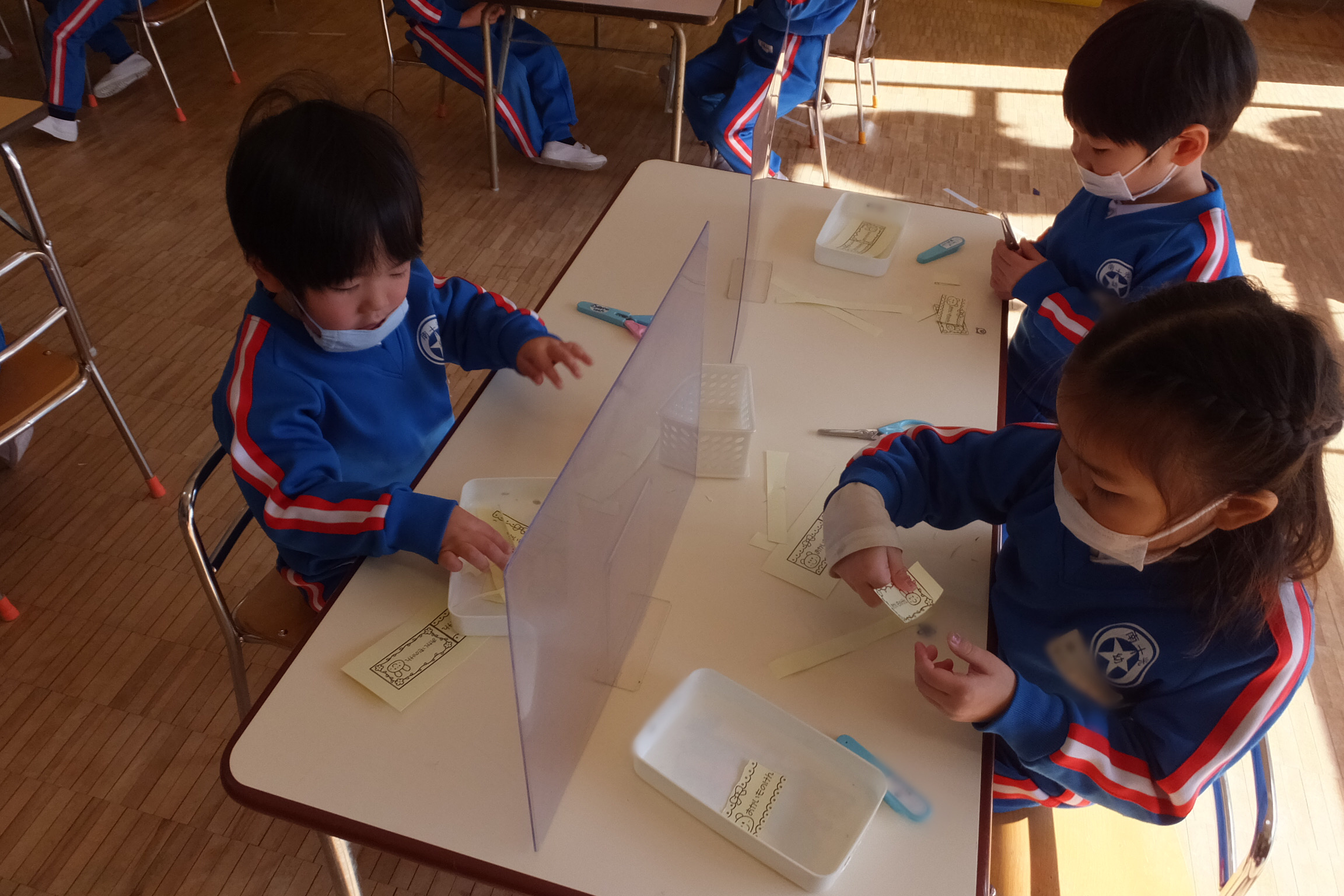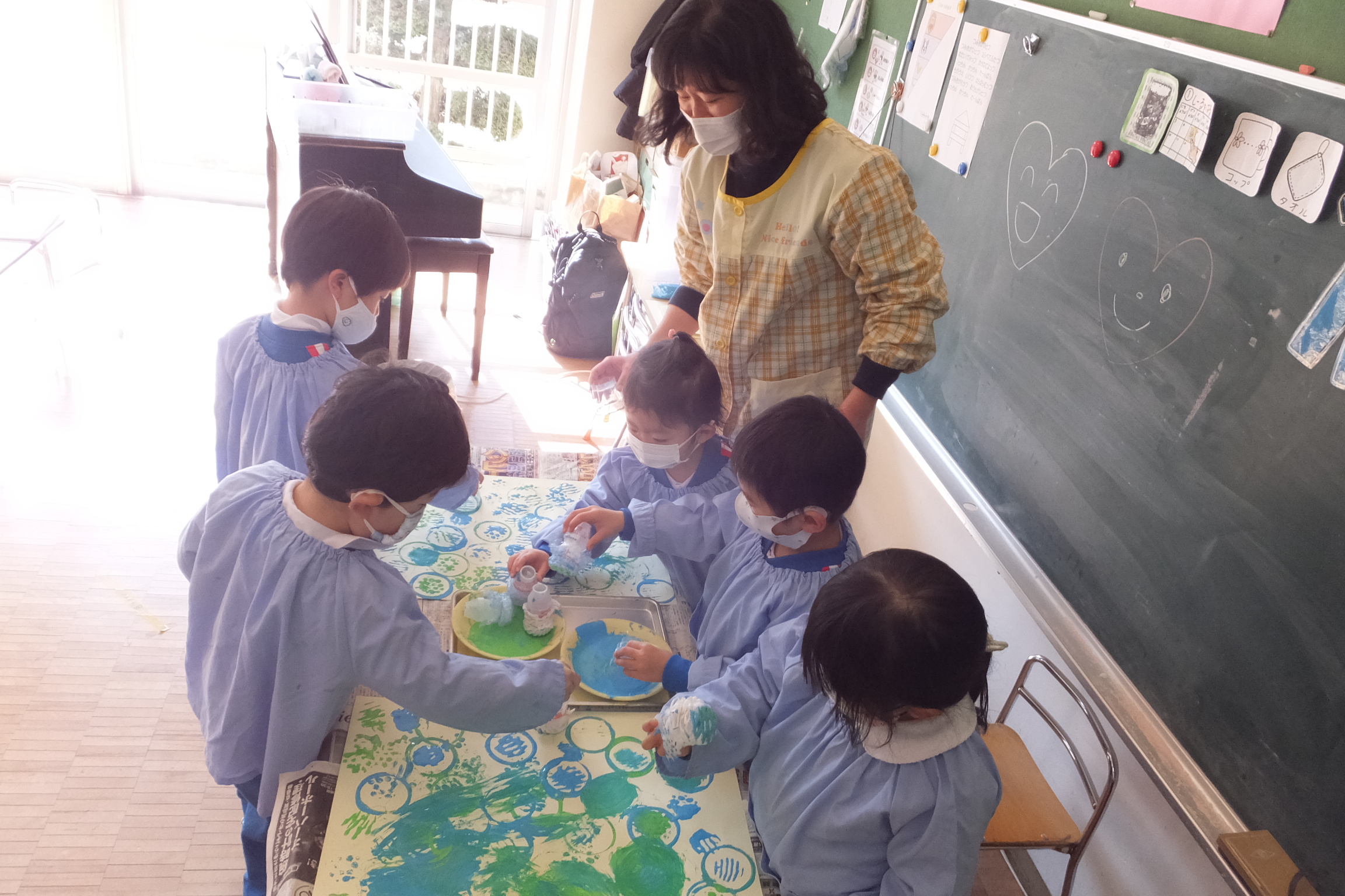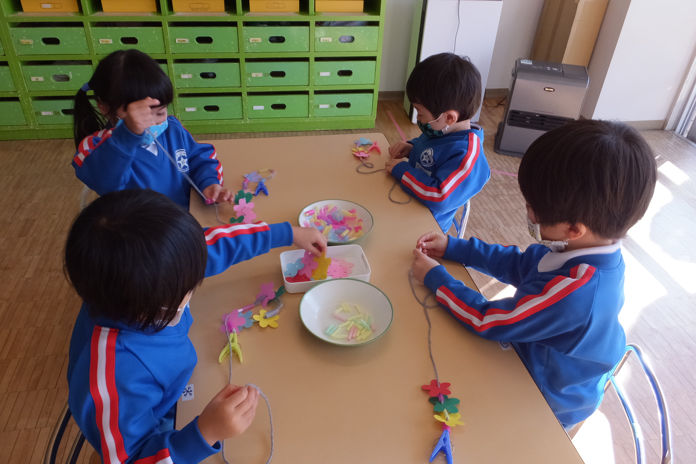 11月に行われたお店ごっこは、年中長さんがお店を開いてくれて、年少組とひよこ組(満3歳児)は、お買い物をしました。今回は、年少組とひよこ組のみんなで品物を作ってお店をオープンします!