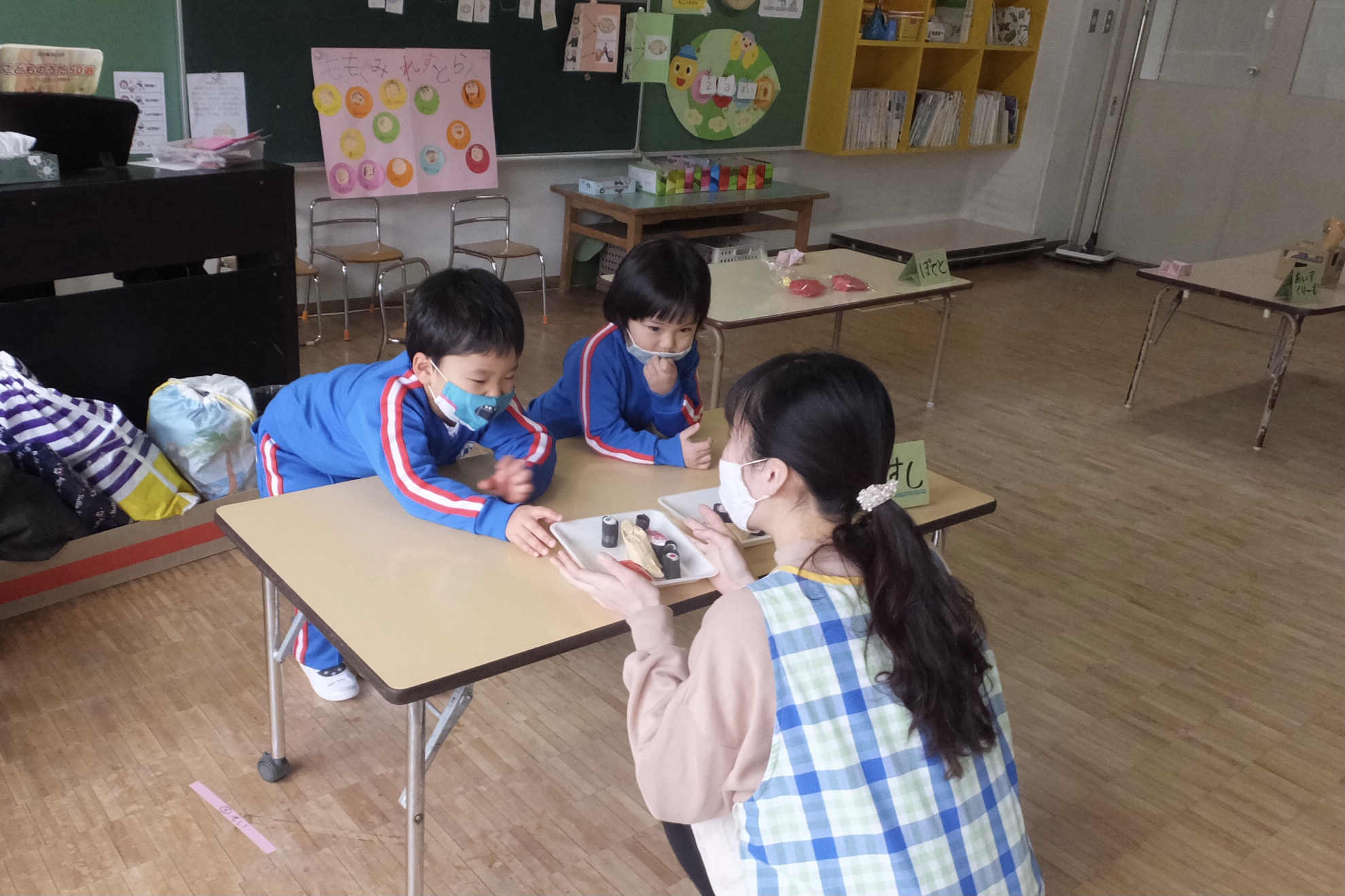 とっても上手にお店のやりとりをしていた年少組・ひよこ組さん。準備万端です!!