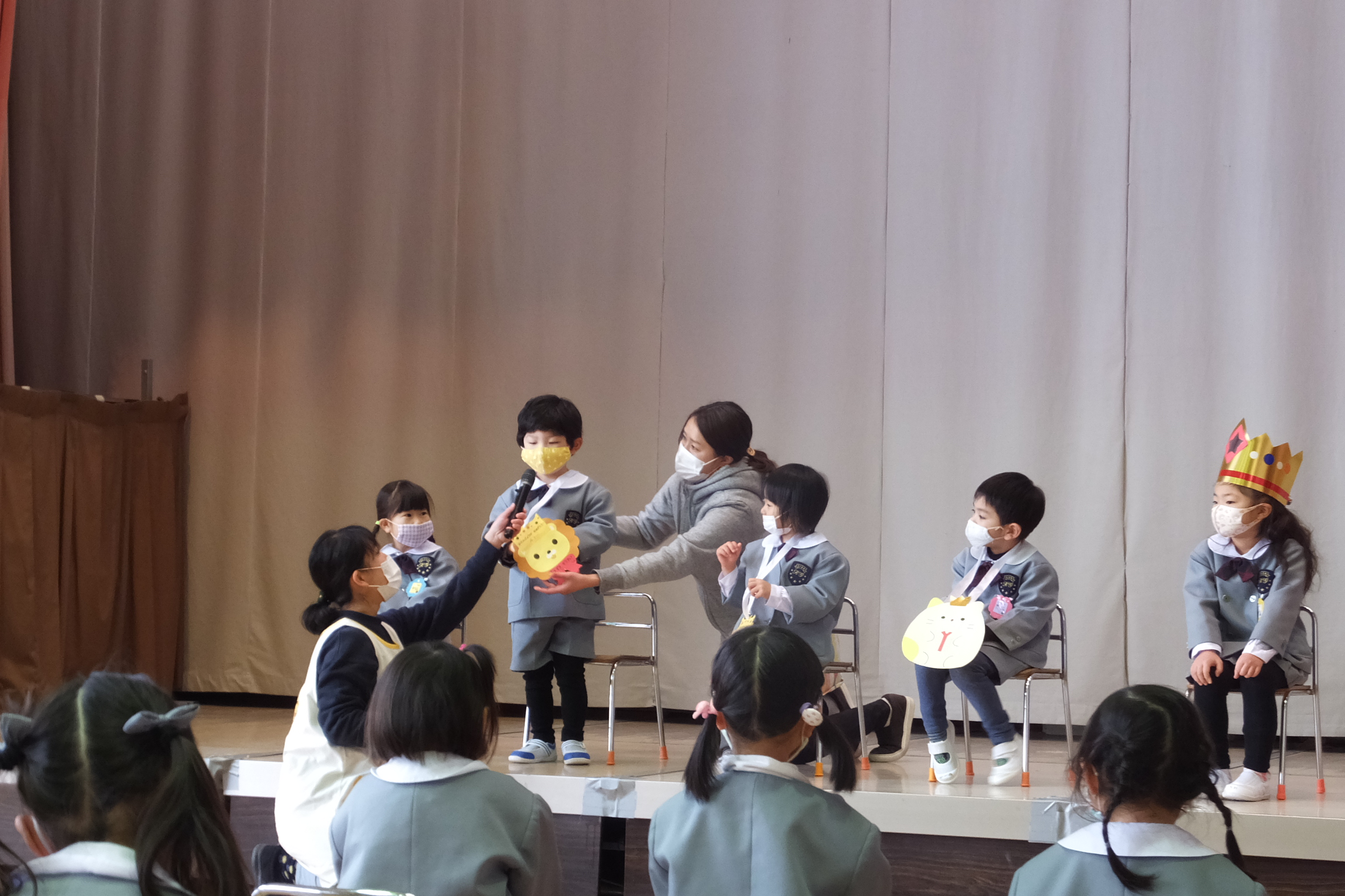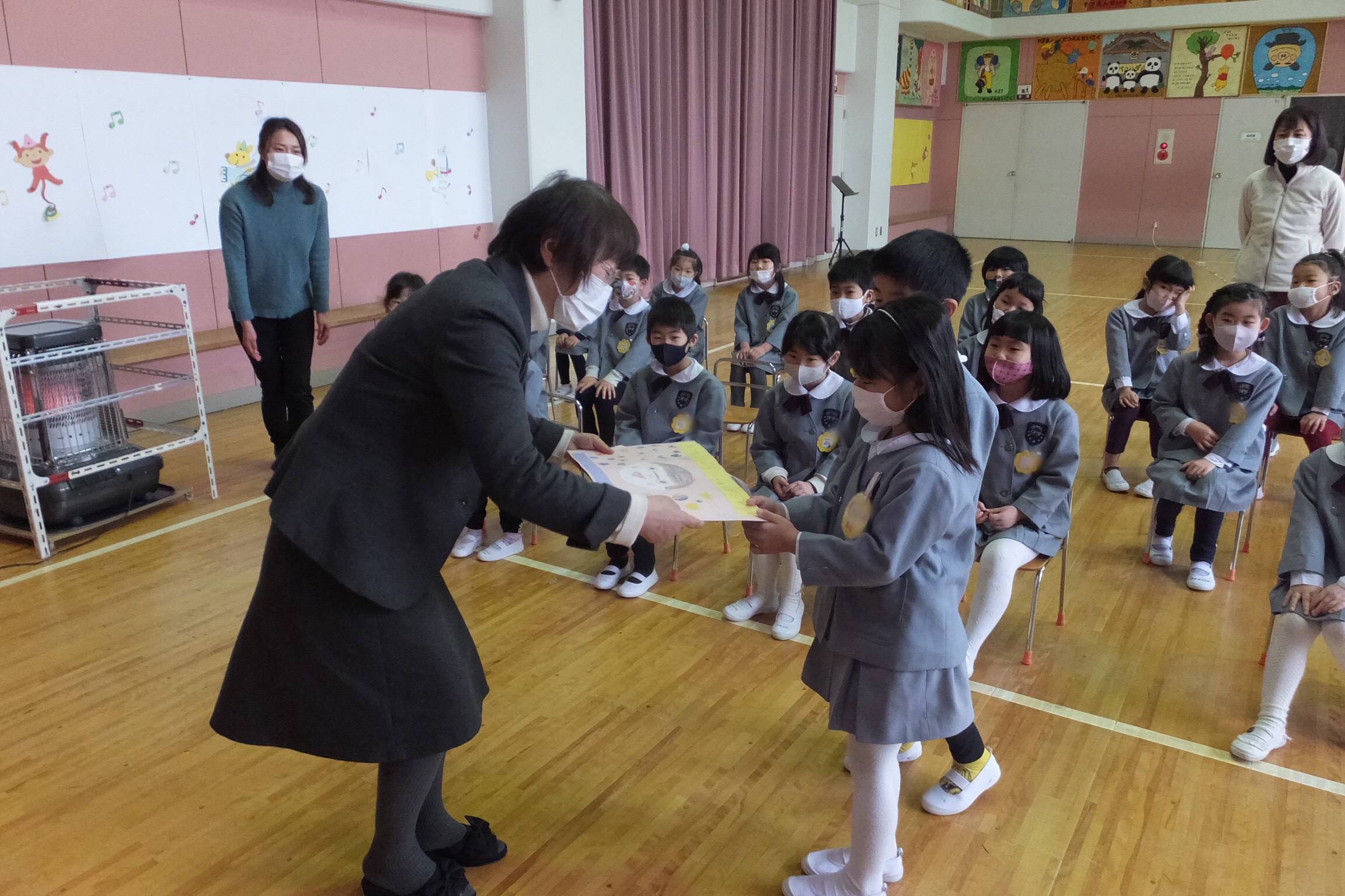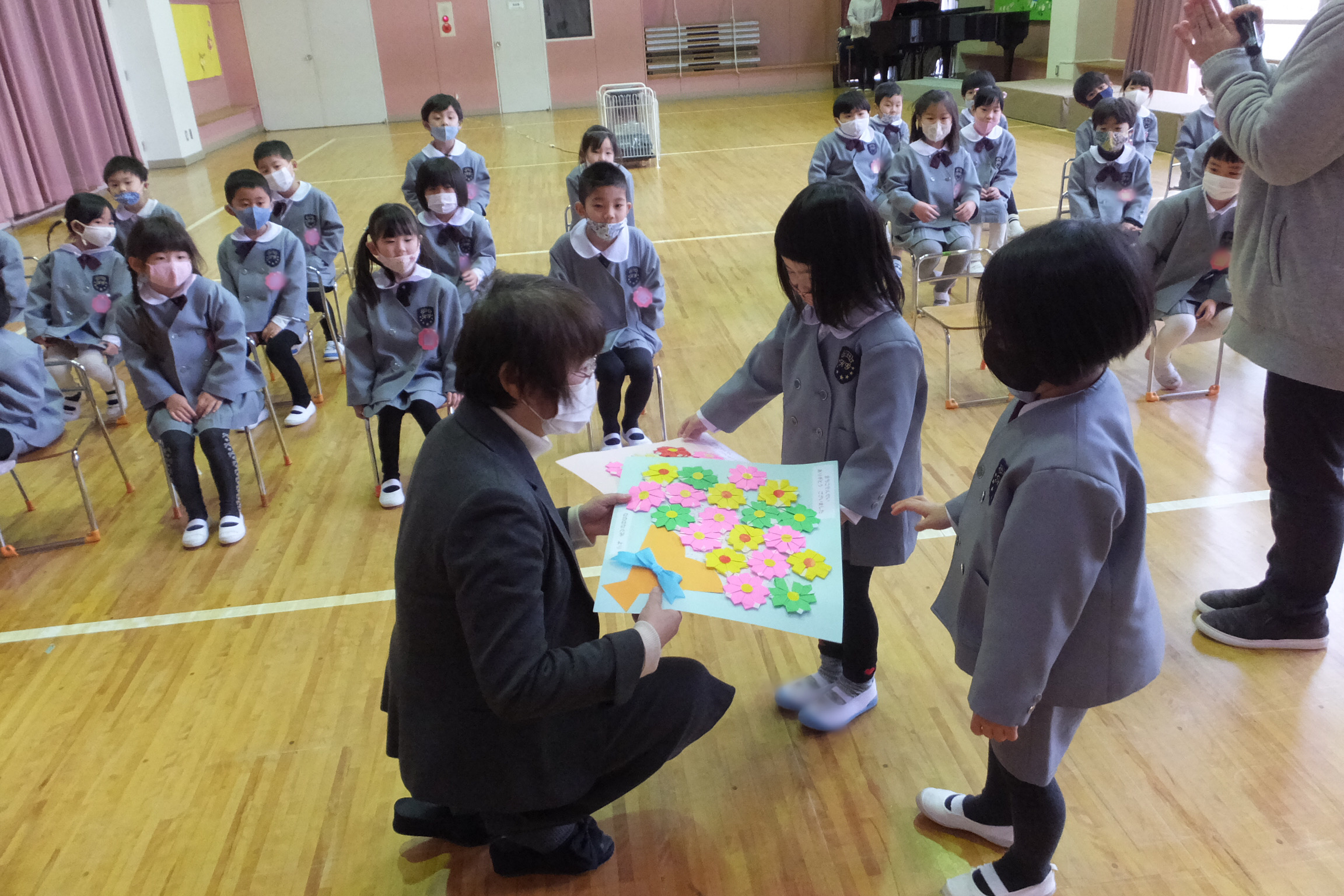 卒園する年長組には、「これから何か思い悩んだ時は、聖書の言葉を思い出してほしい。神様・イエス様はどんな時も一緒にいてくれるよ」と優しくお話していただきました。