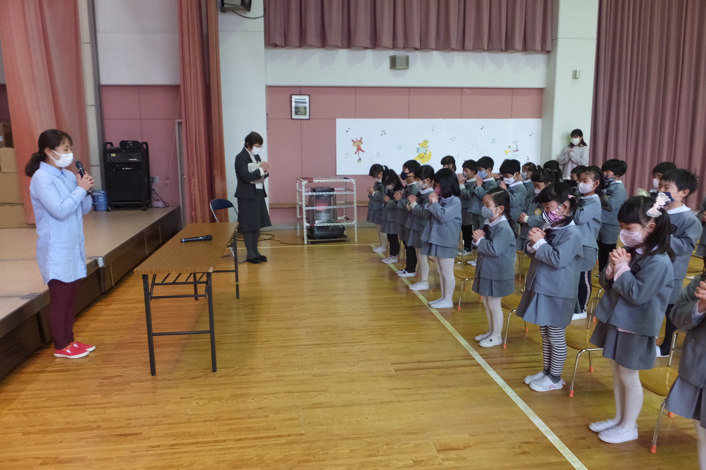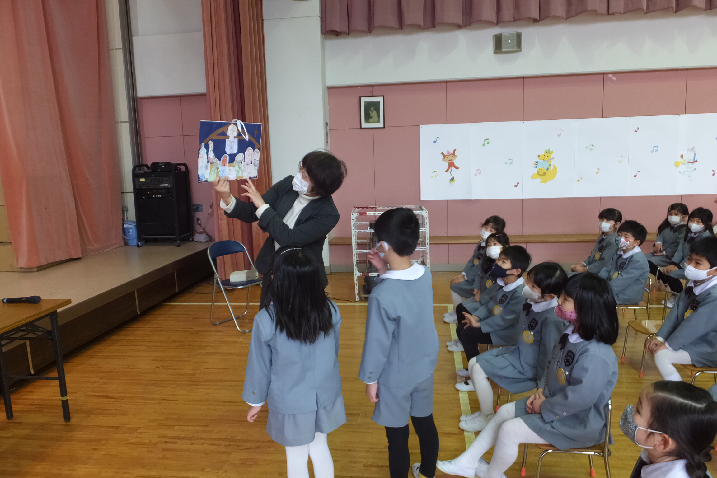 卒園する年長組さんは、お話を聞くのが最後になりますが、いつまでも神様の話を心に留めていてほしいと思います。