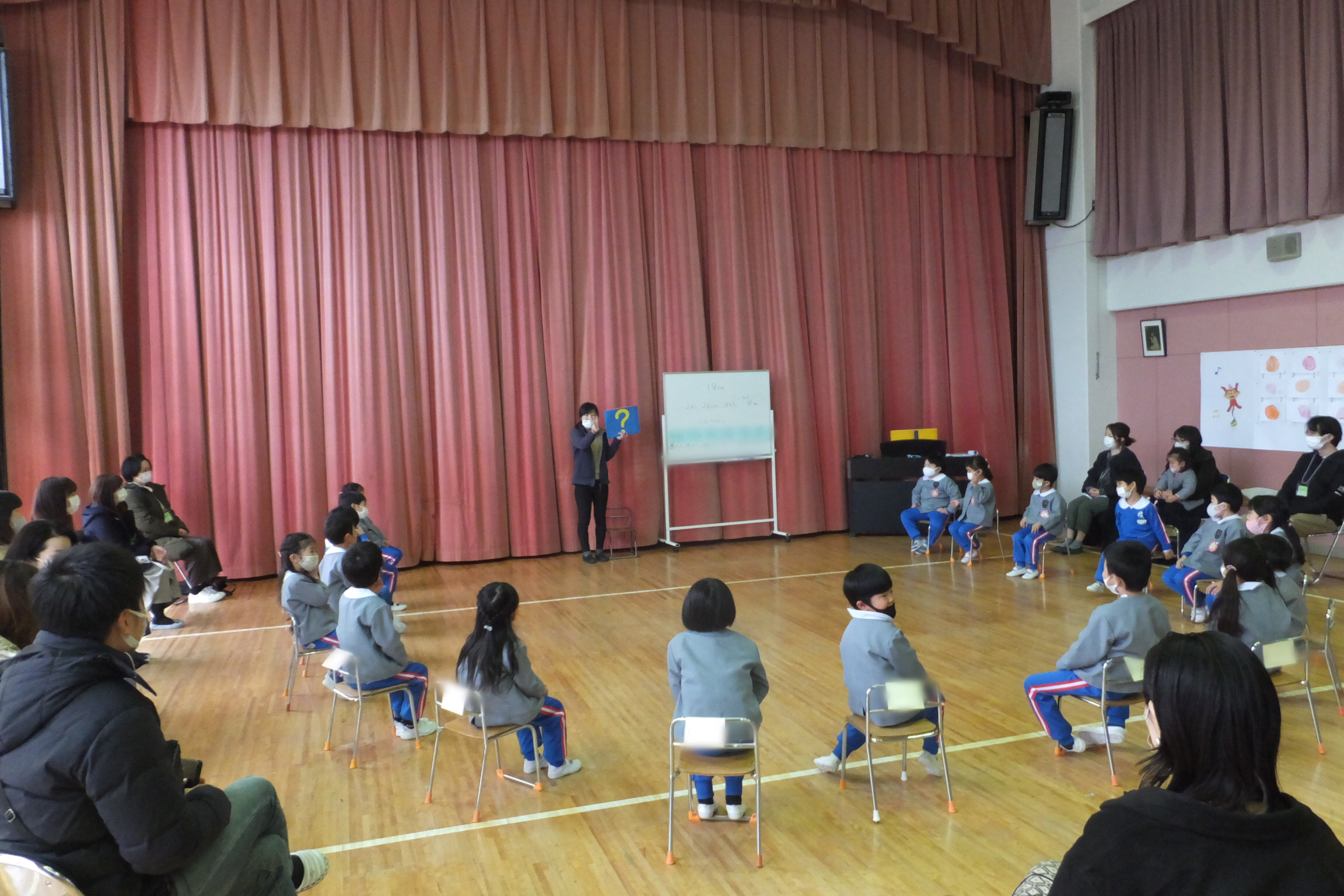 年少組は、はじめに朝の会・礼拝の姿を見てもらいました。