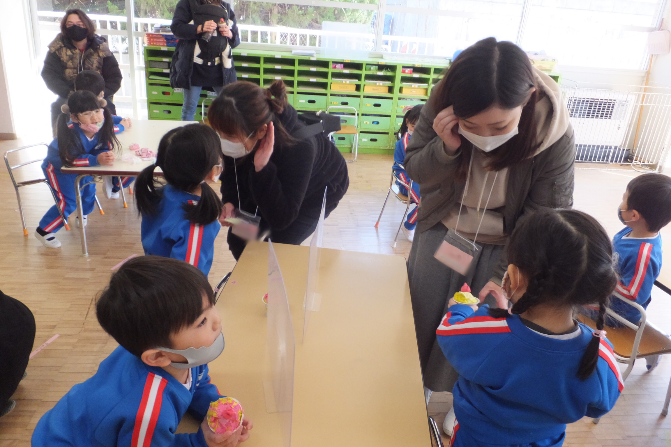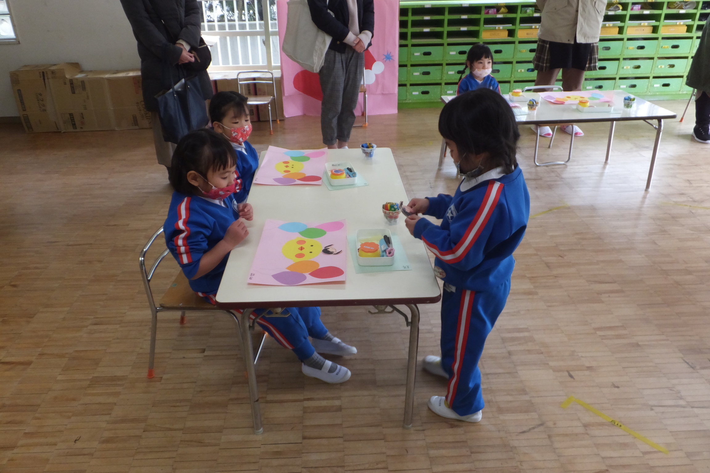 保護者の皆様、保育参観・保護者会にお越しいただきありがとうございました。子どもたちの普段の幼稚園の様子や成長した姿を見ていただけたのではないでしょうか。入園・進級してから、みんなと一緒に過ごす中で、色々なことが出来るようになりました。今後も進級に向けて気持ちを高められるよう、一人一人に寄り添いながら、楽しい毎日を過ごしていきたいと思います。