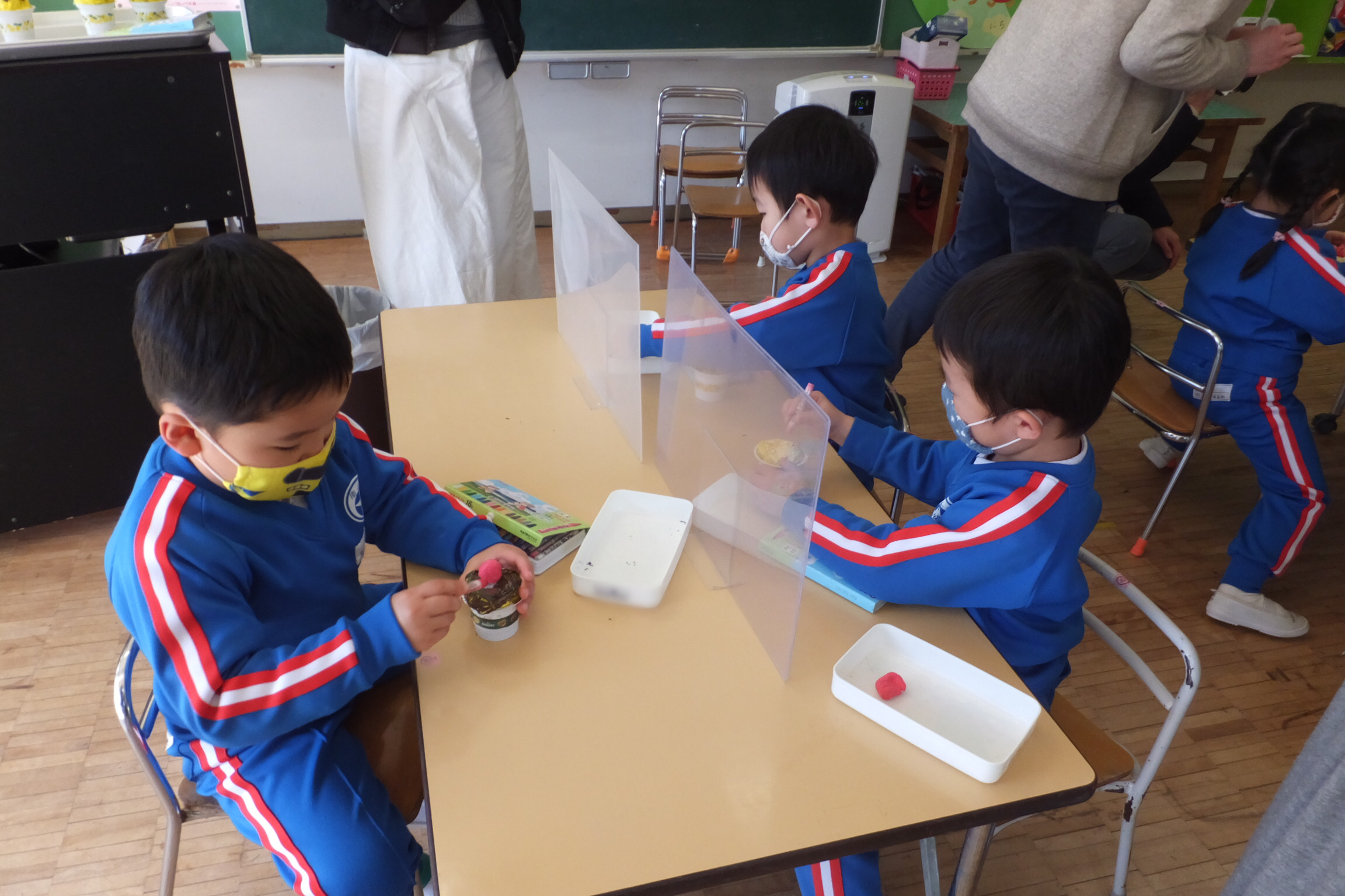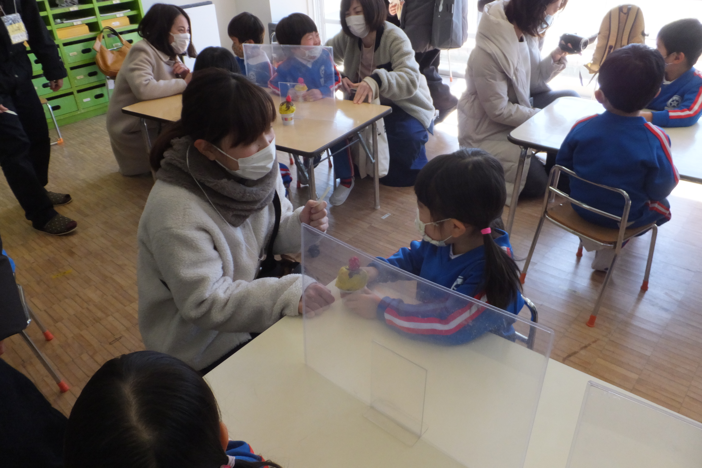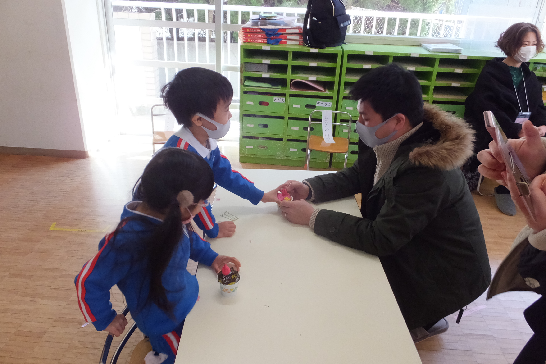そして…出来上がった後、「お店、開店します」の合図で、お家の人に順番に買いにきてもらいました。