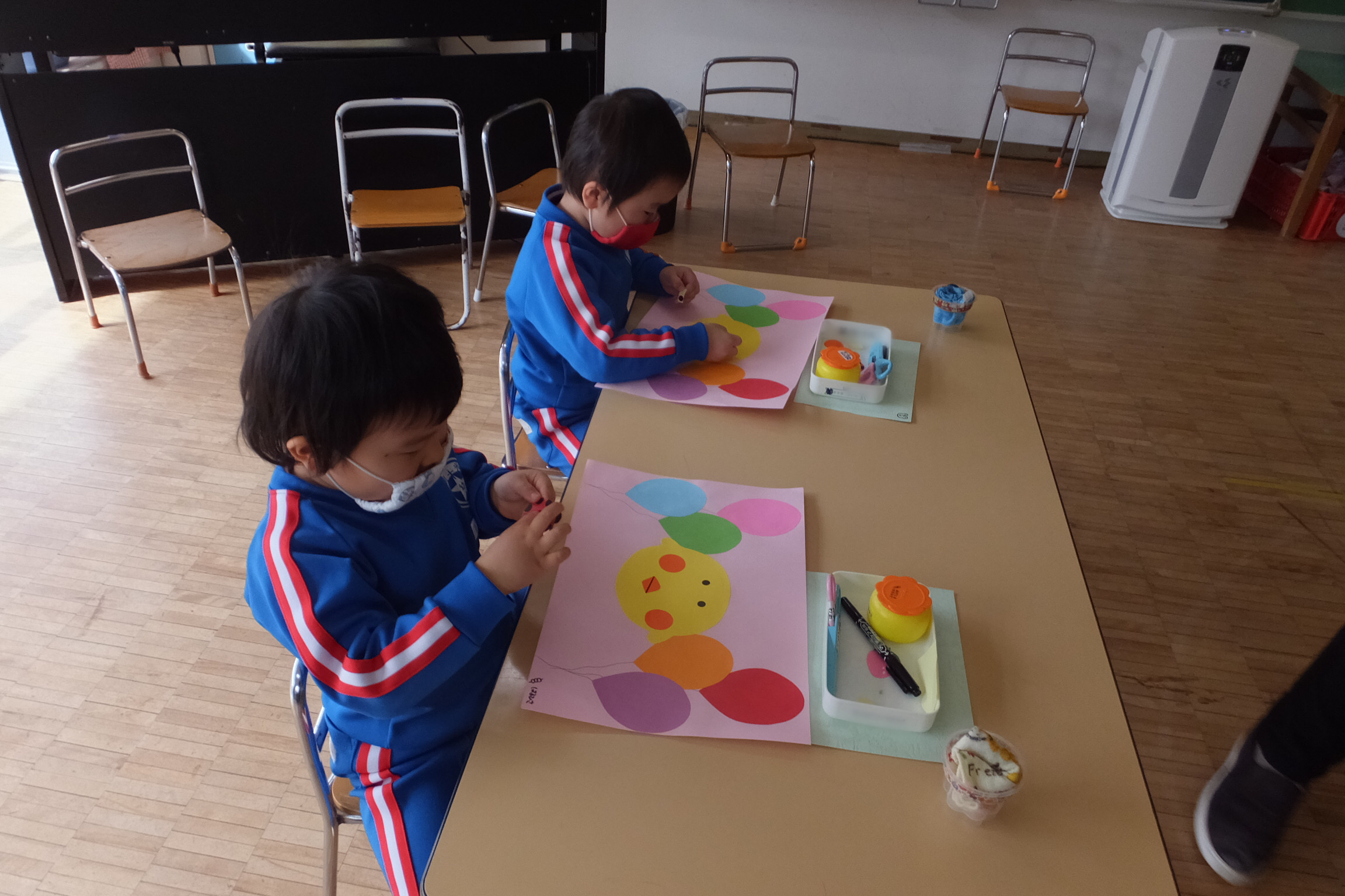 ひよこ組(満三歳児)は、親子で制作をしました。