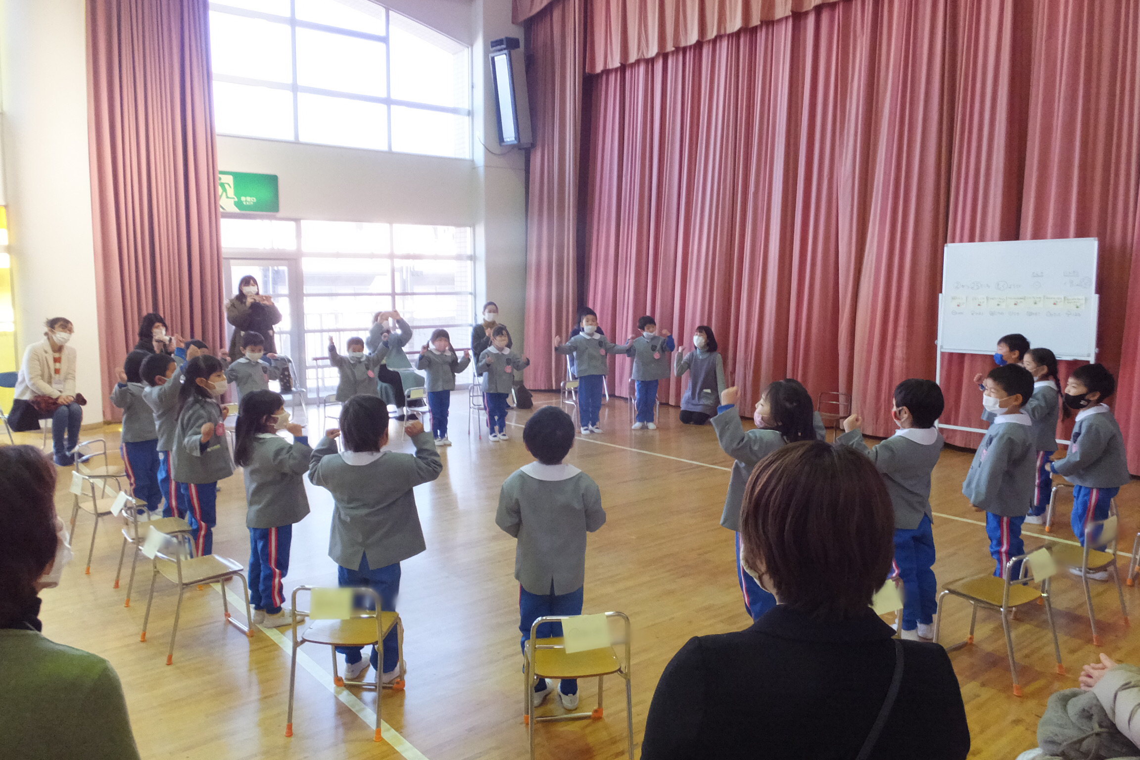 最後は、「年長さんになっても、頑張ります!」の気持ちを込めて歌をうたいました。