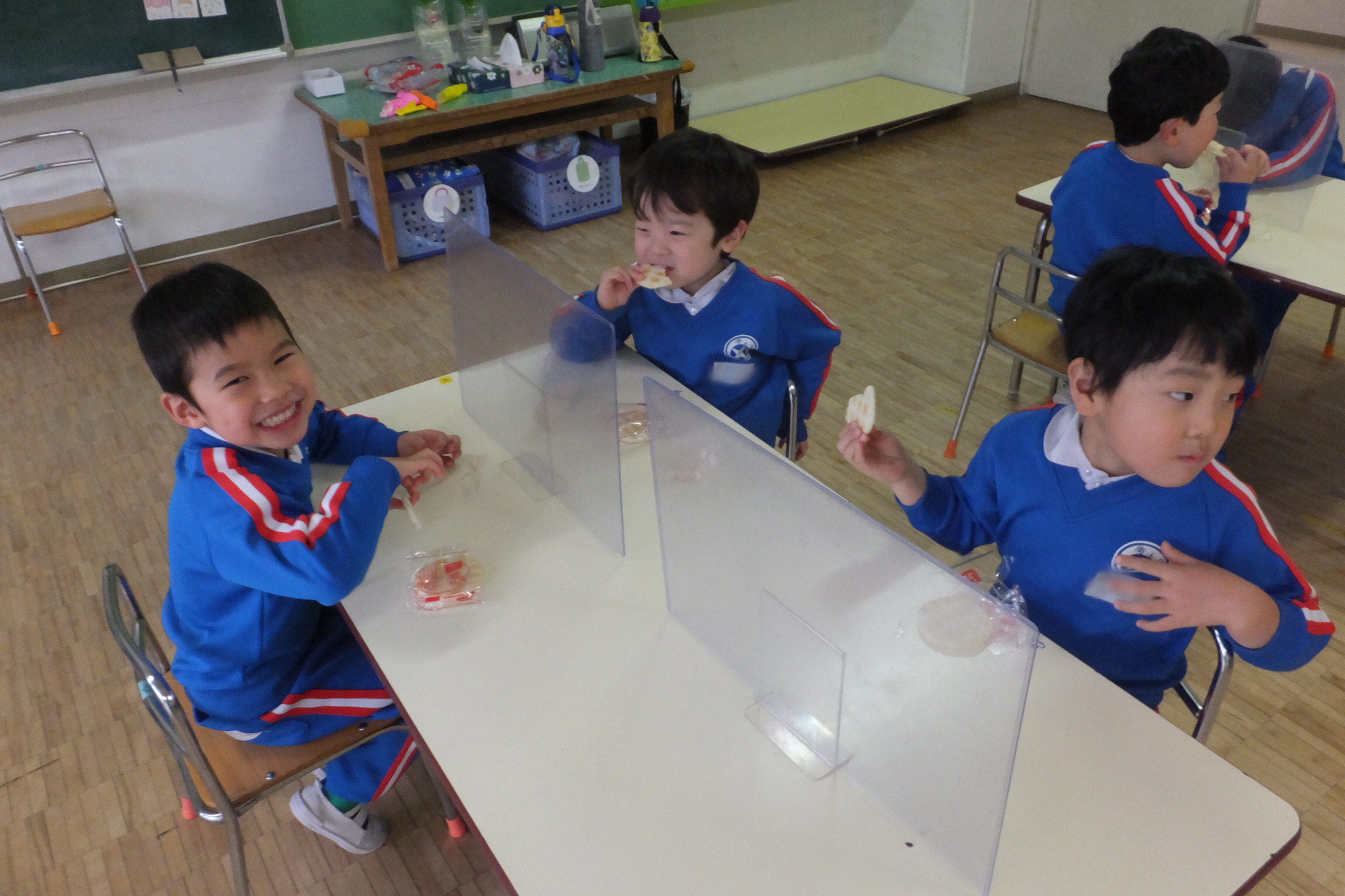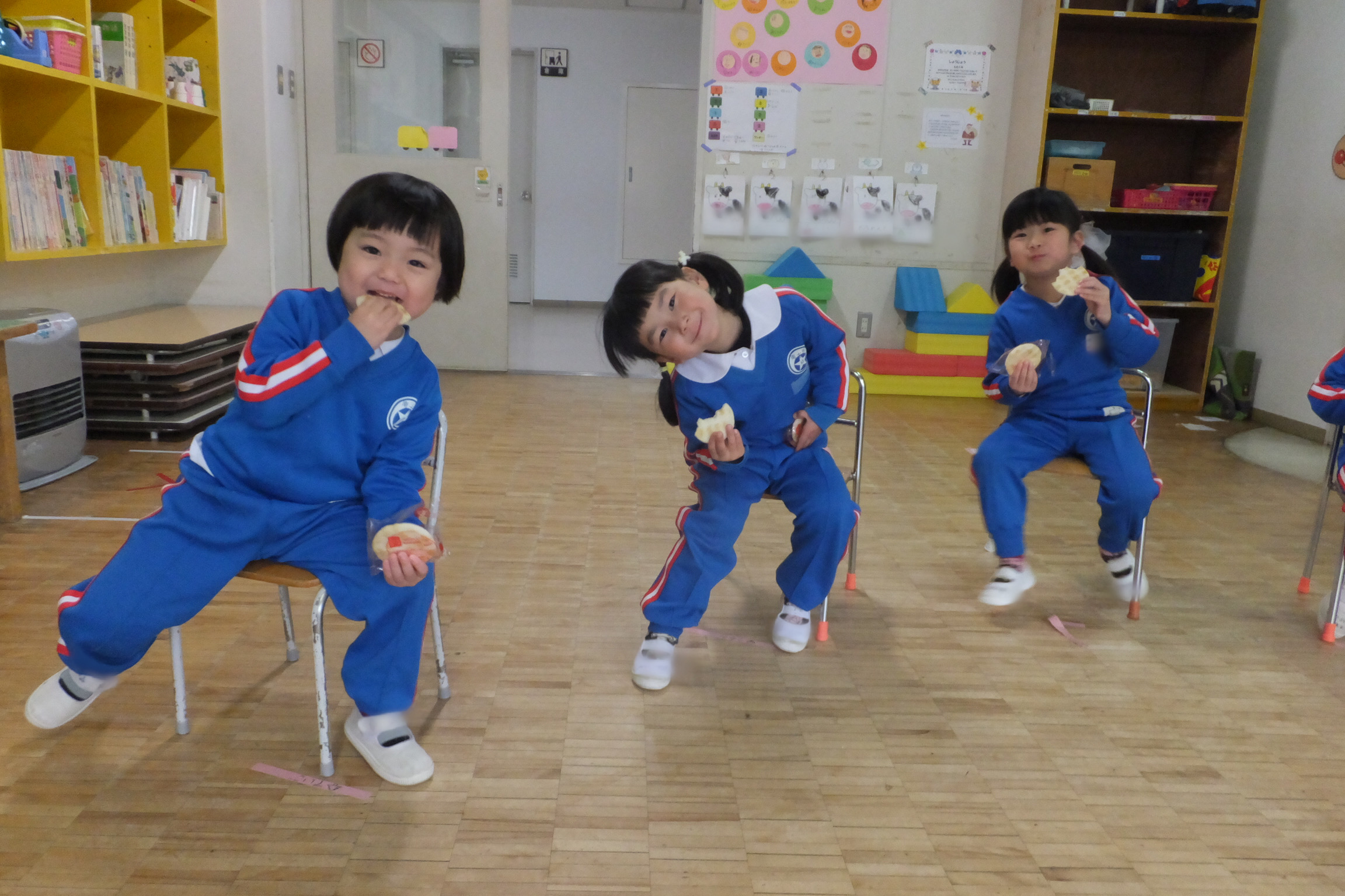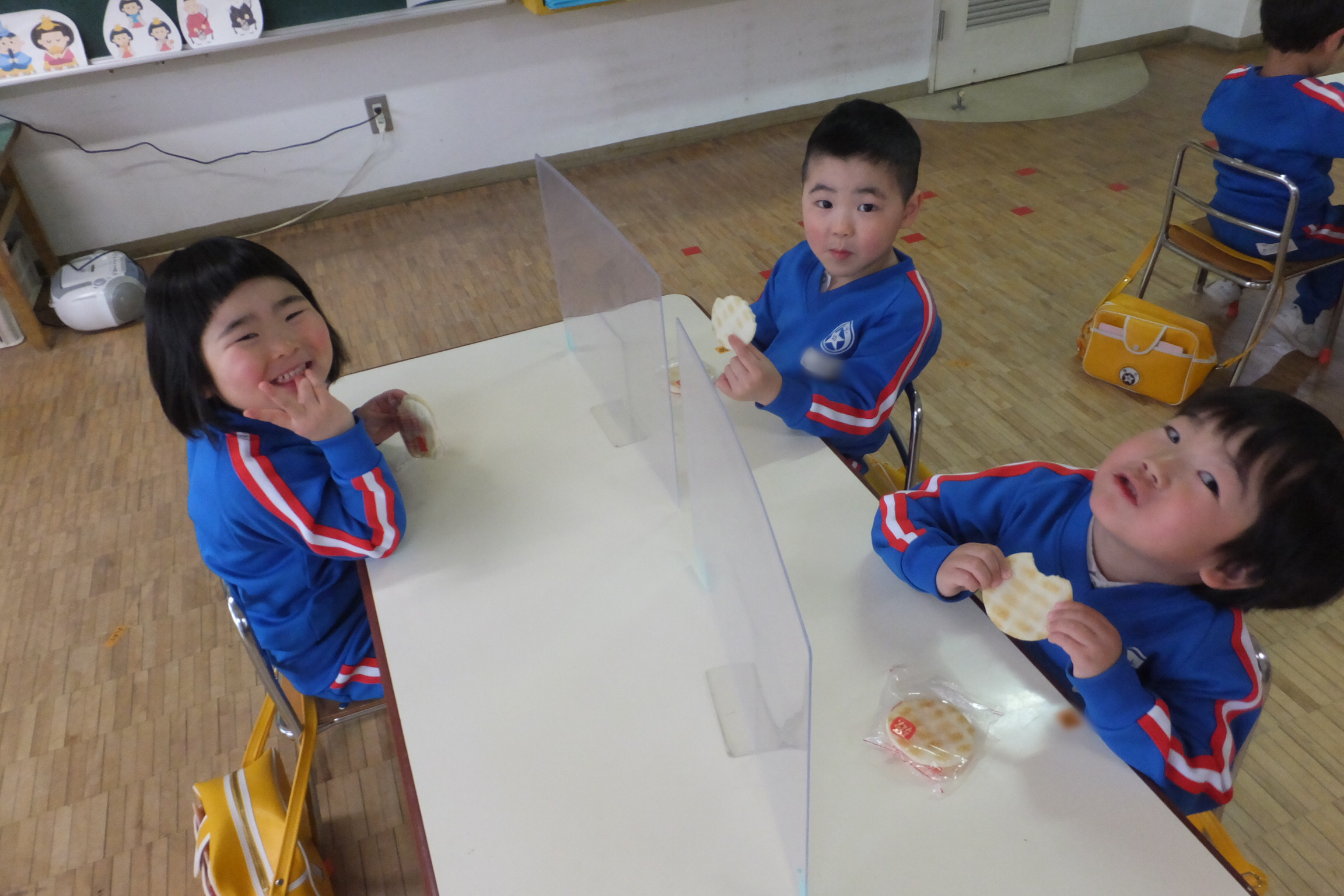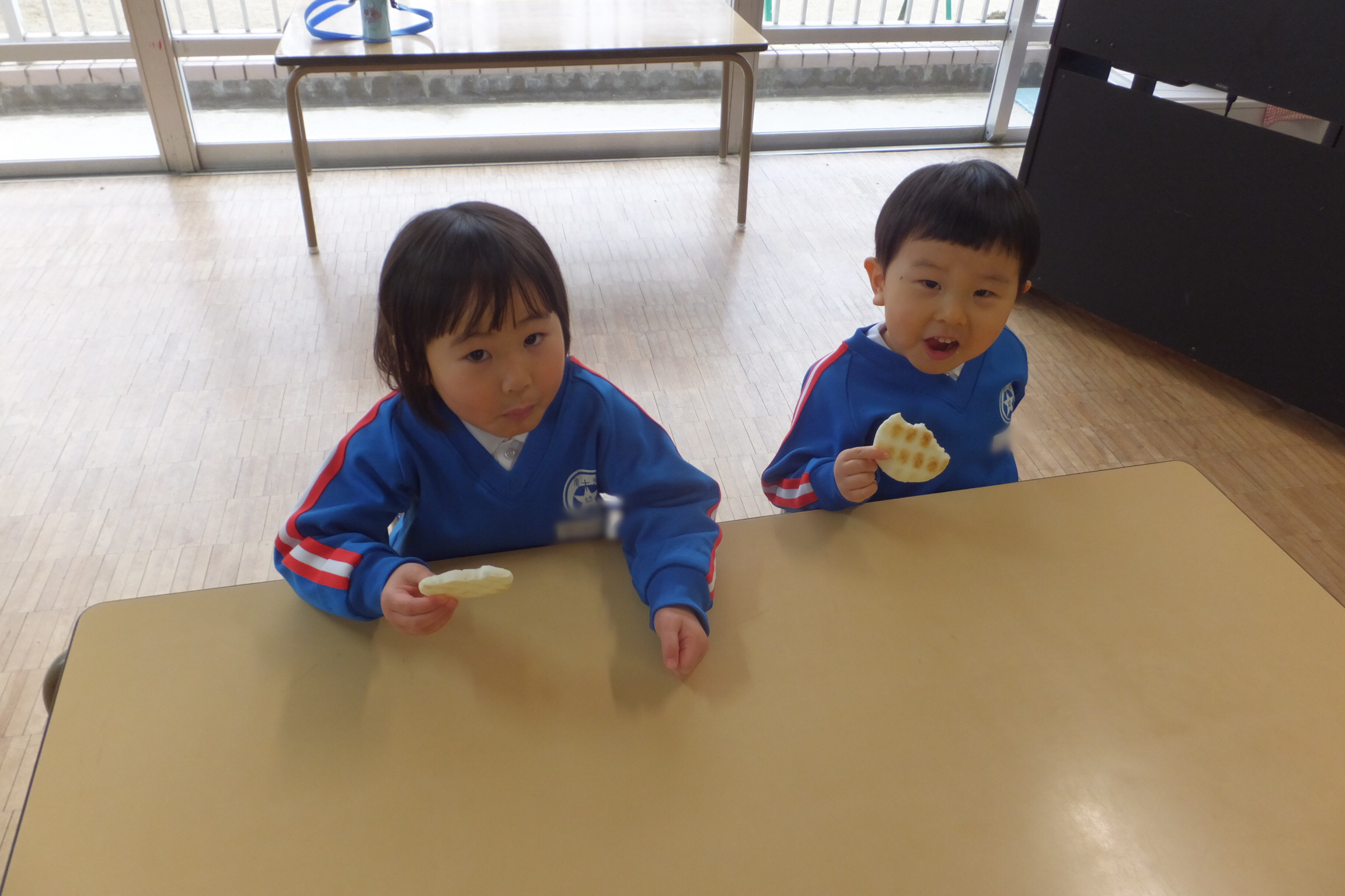 お誕生会の後は…おやつの時間!!今日は、おせんべいです!