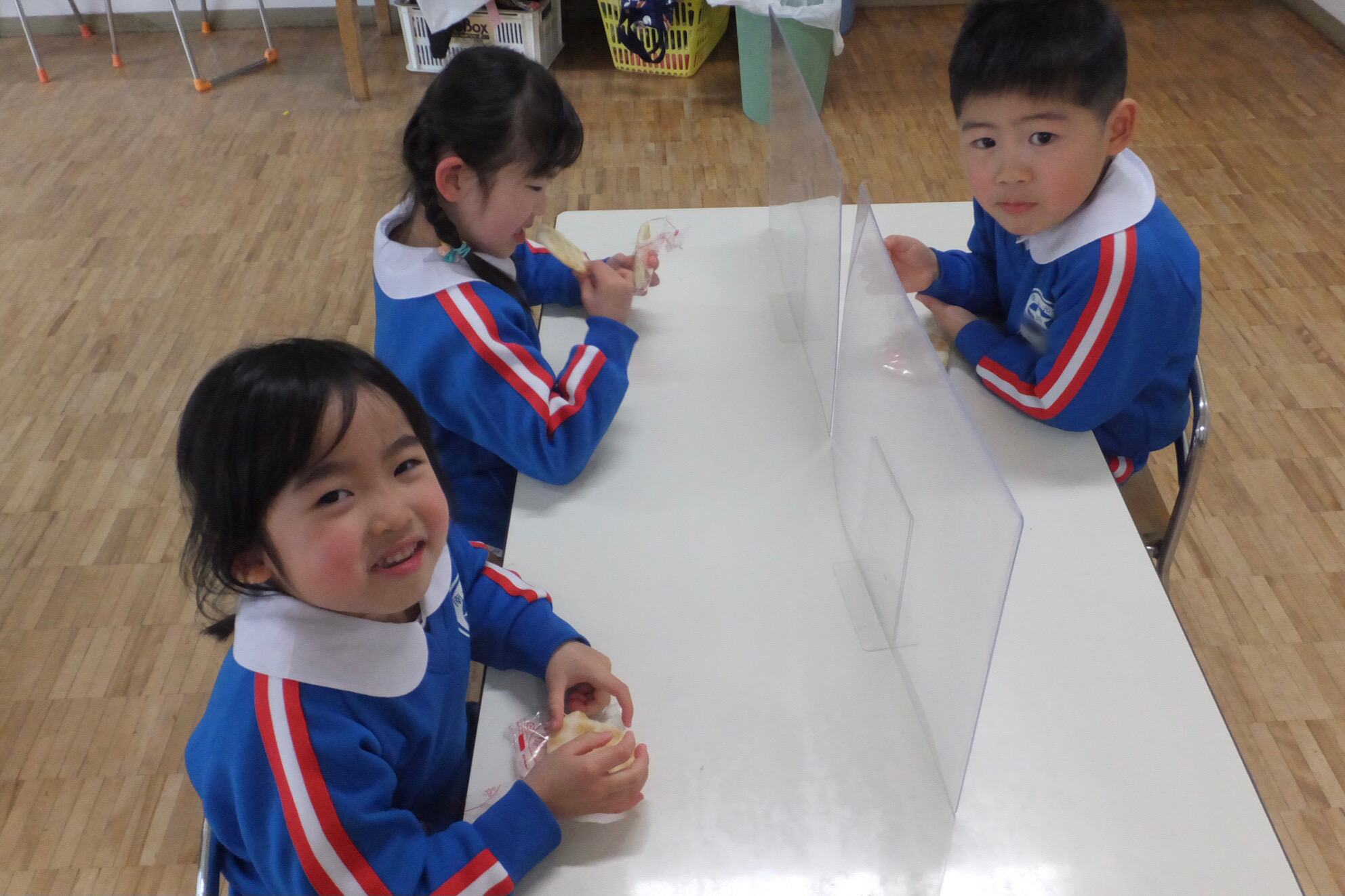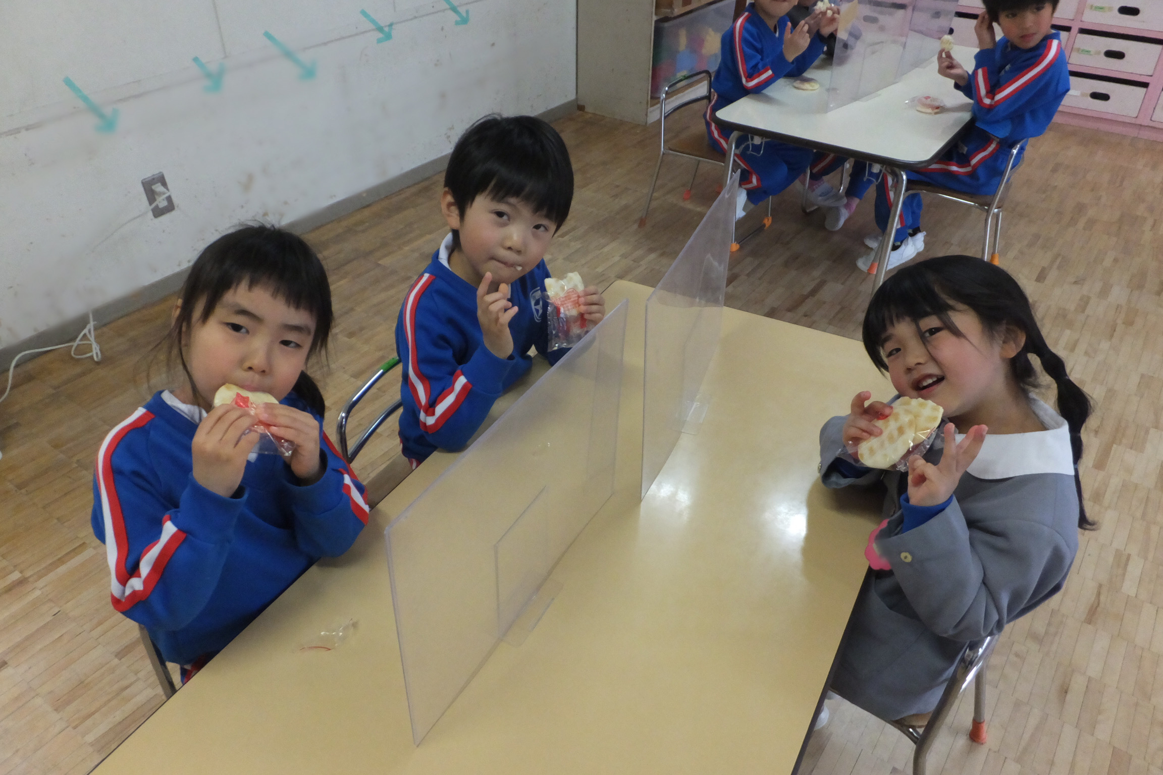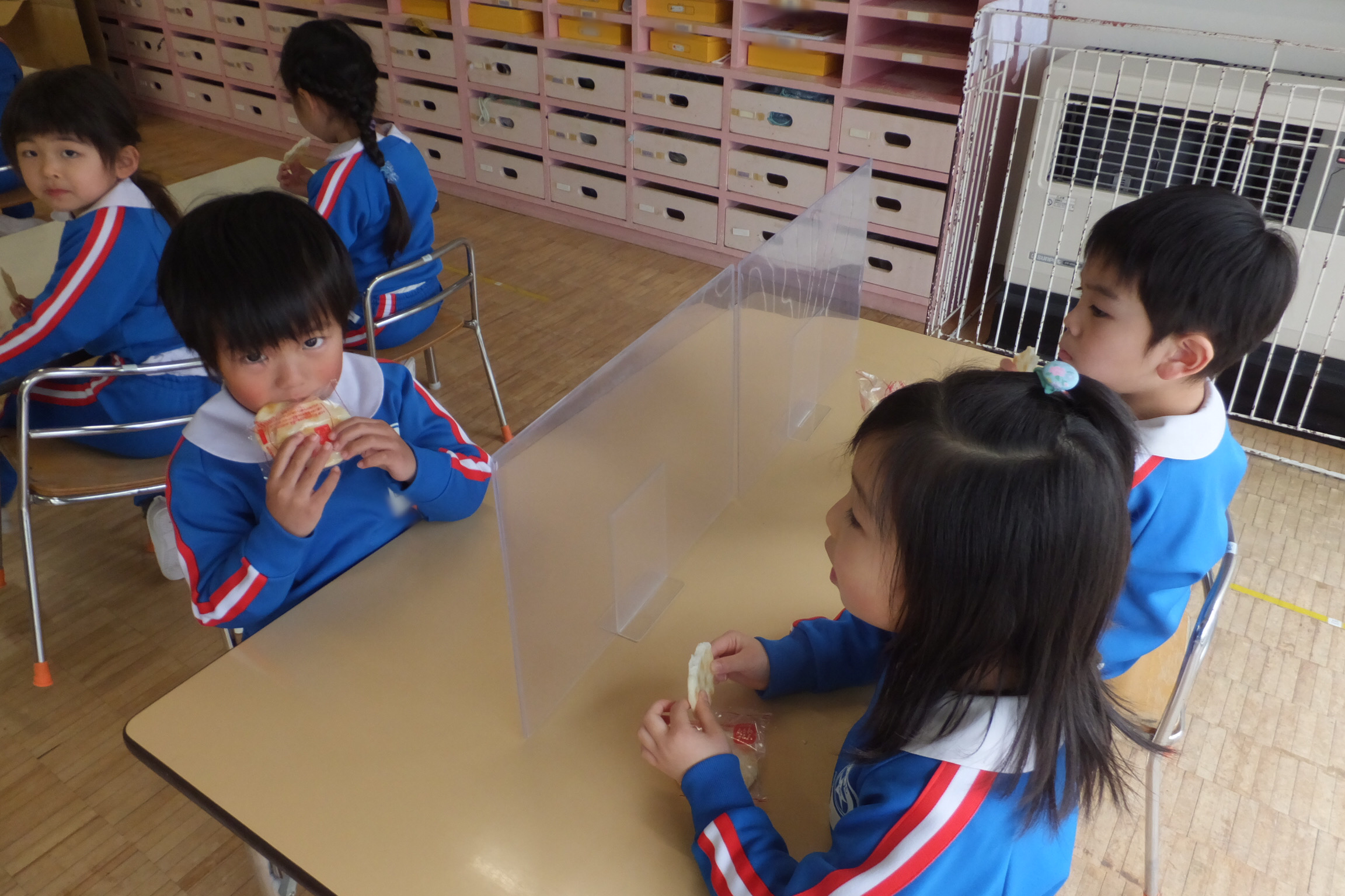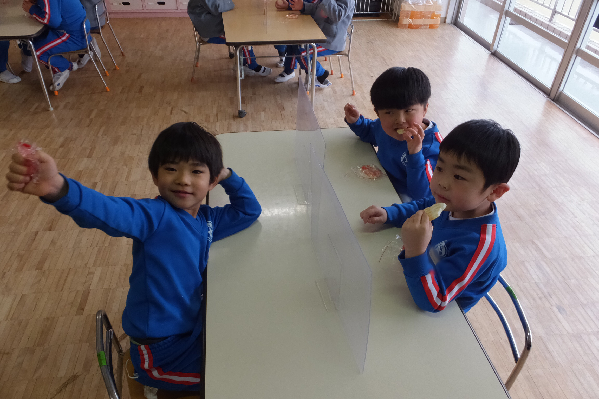 お誕生会の後は…おやつの時間!!今日は、おせんべいです!