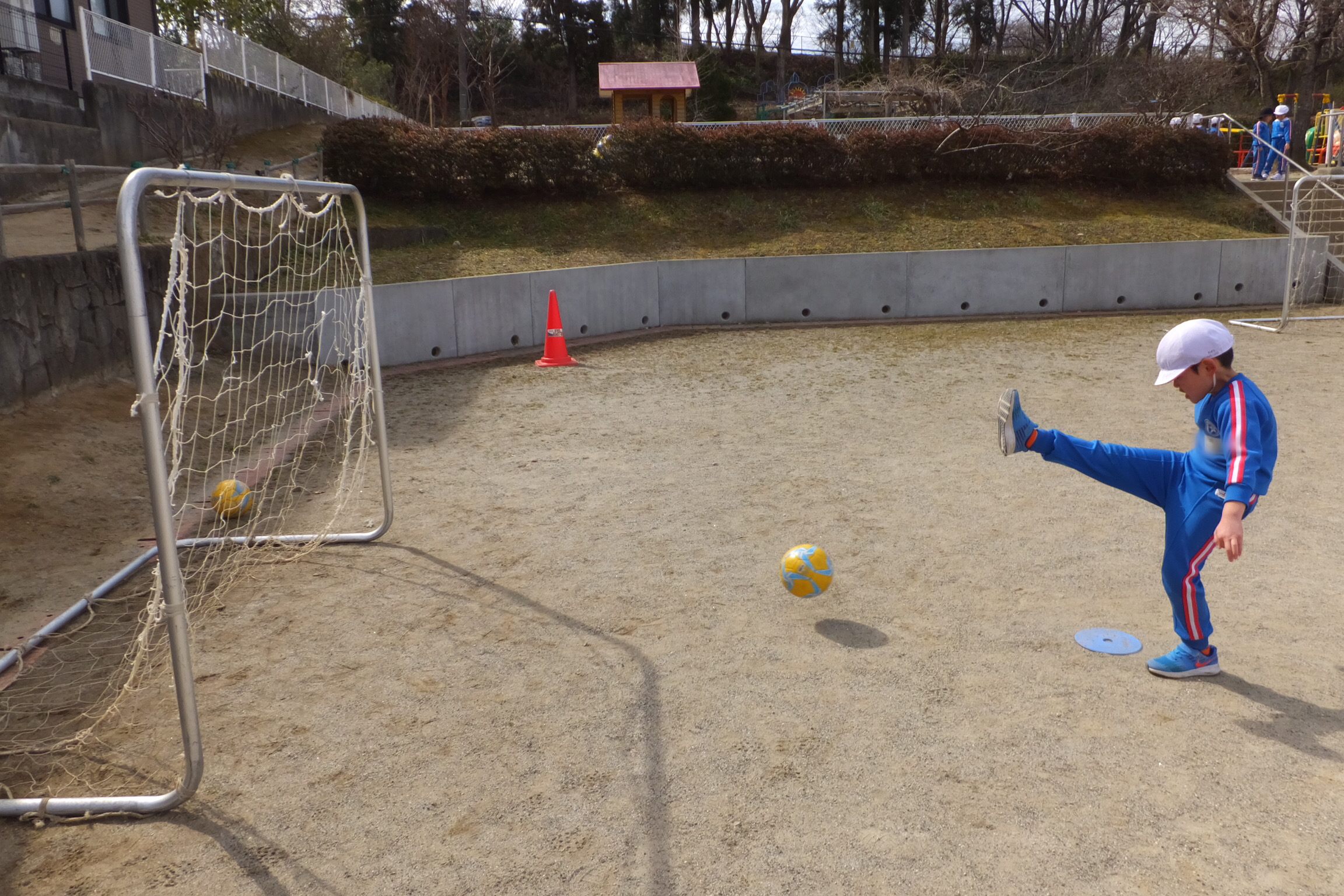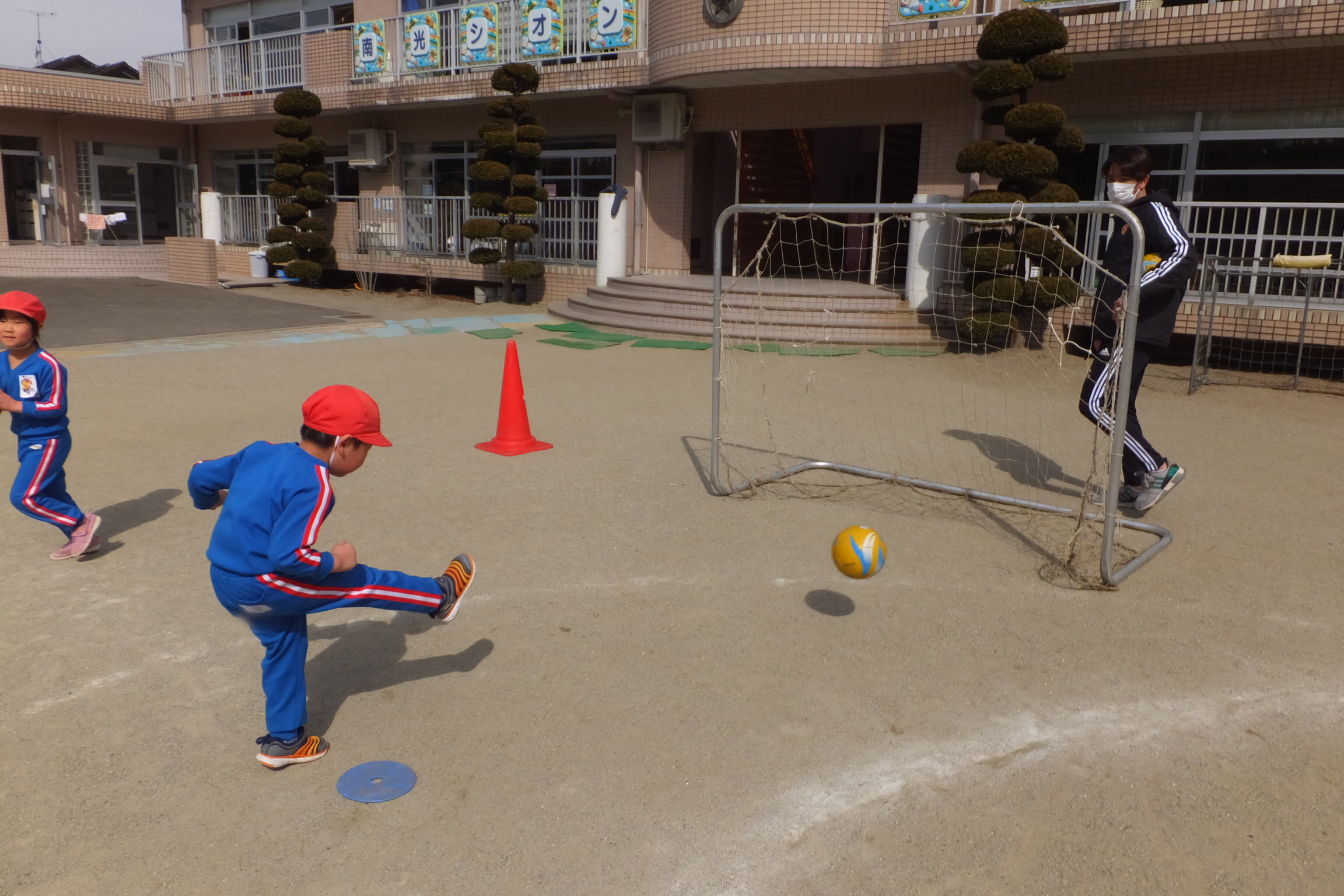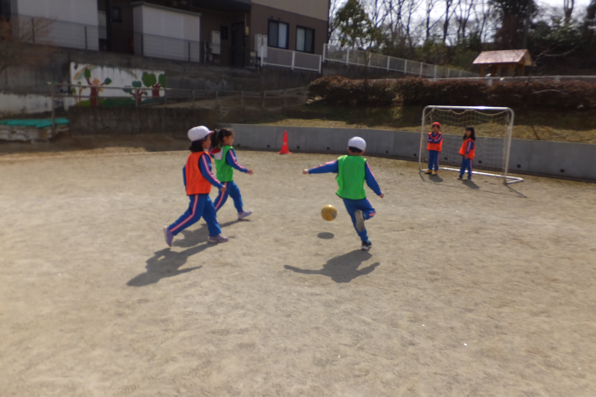 午後の外遊びでも、サッカーにはまる子どもたち!実際にやってみて、「楽しかった!」という思いが子どもたちのやる気を引き出すのだと改めて感じました。
