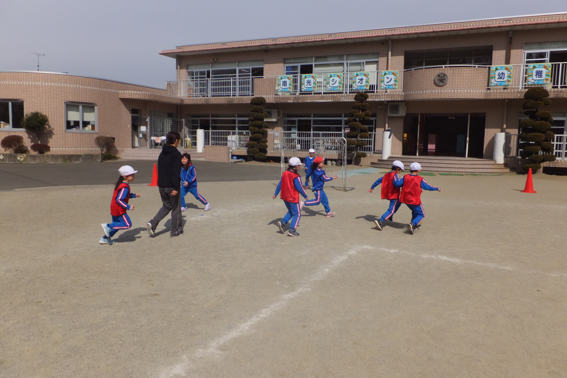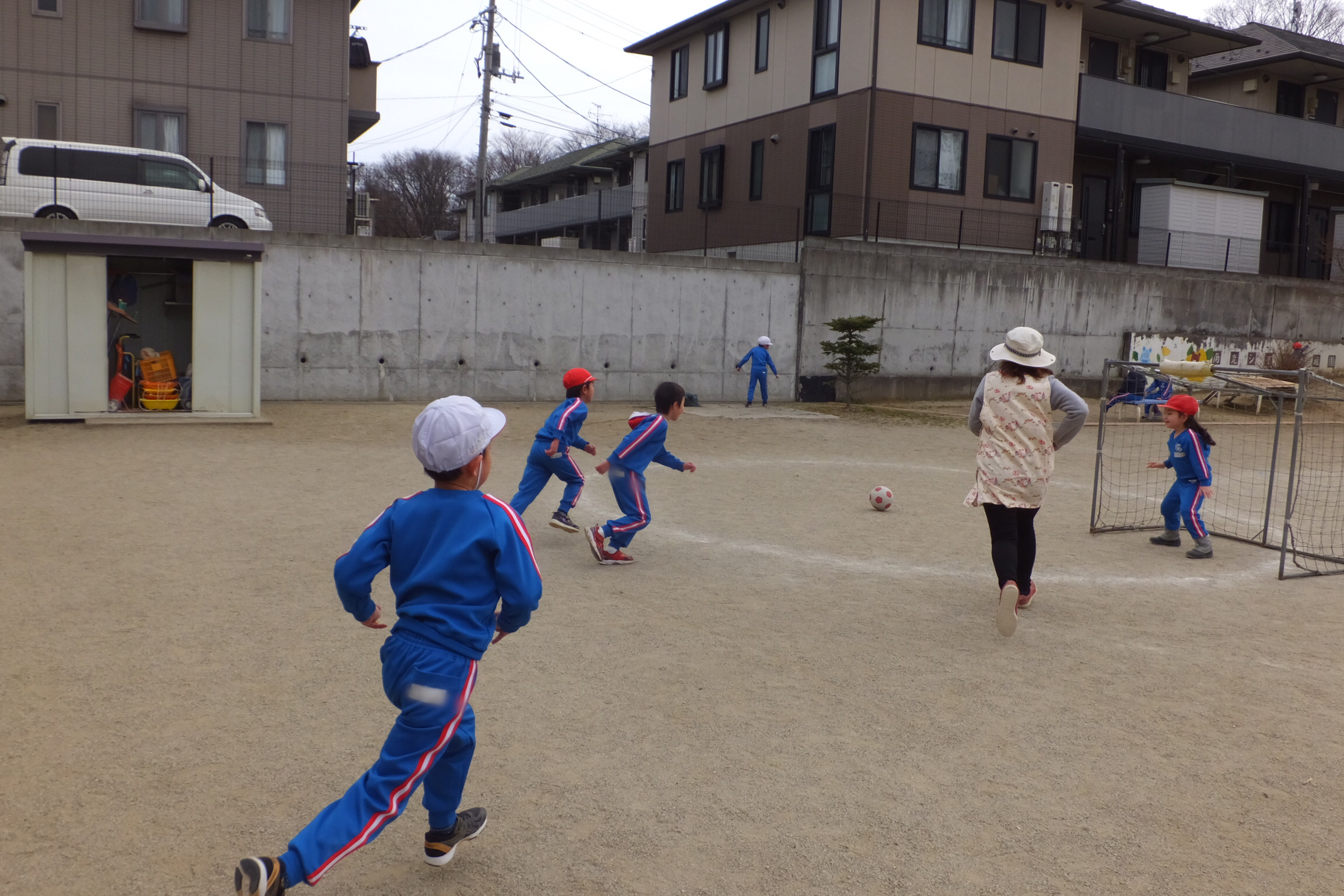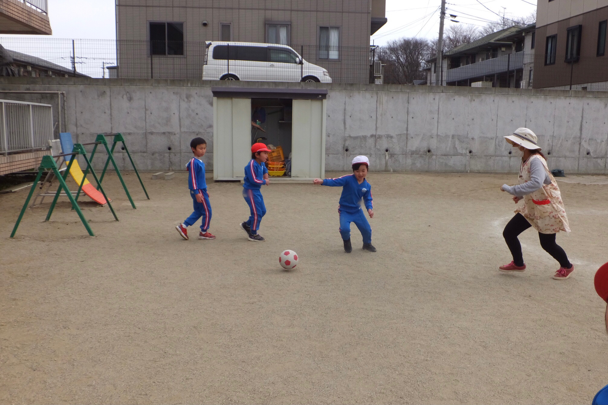 午後の外遊びでも、サッカーにはまる子どもたち!実際にやってみて、「楽しかった!」という思いが子どもたちのやる気を引き出すのだと改めて感じました。