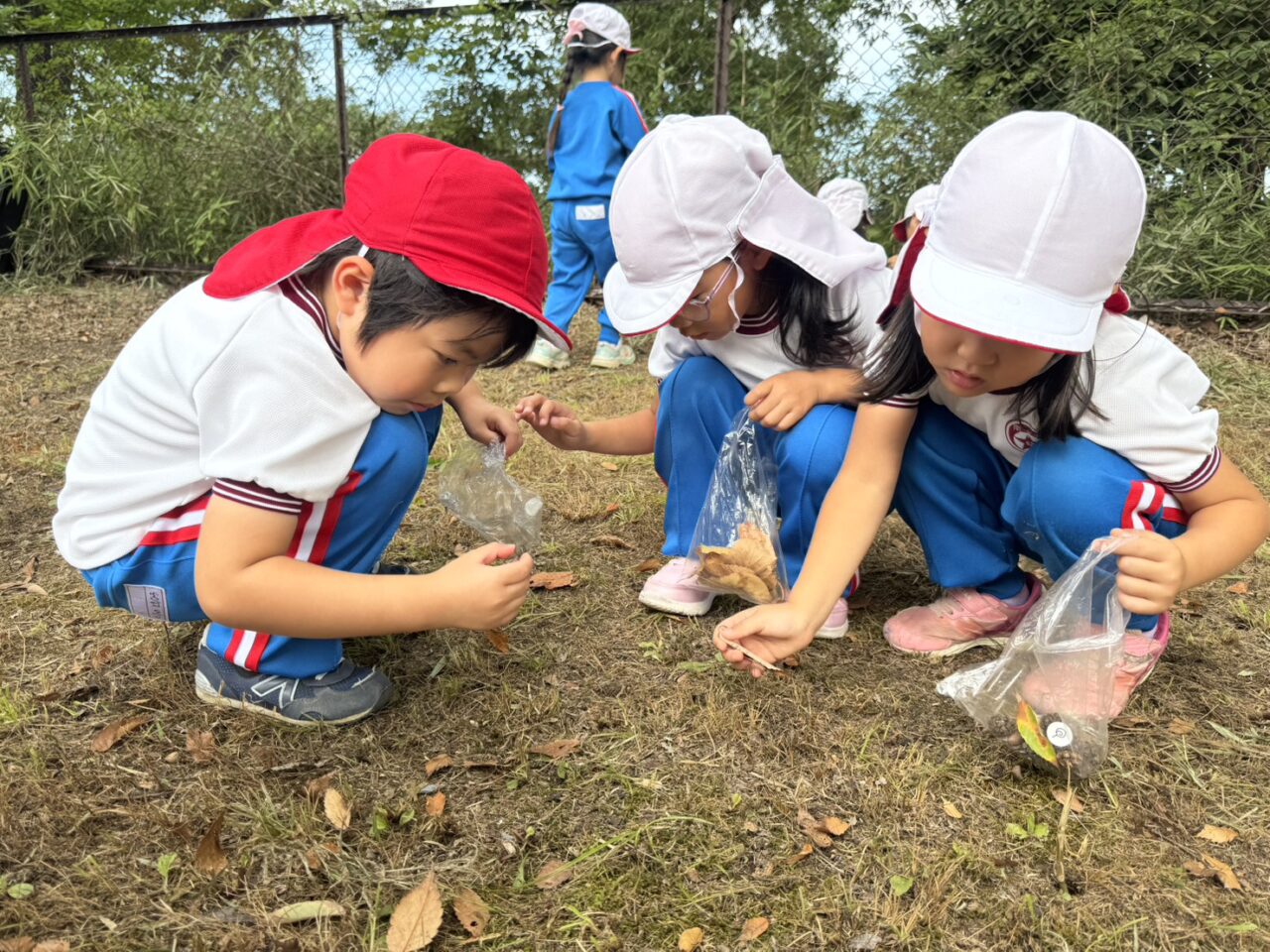 年中組のみんなで、緑地公園へ秋探しに行ってきました! 散歩しながら、公園に到着!! 木の実は、あるかな?? 「どんぐりあった!」の声に、みんな集まり、夢中で拾っています。 「これは、何かな??」 落ち葉の上 […]