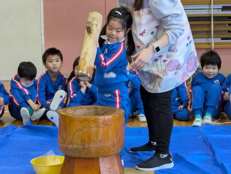 1月23日、幼稚園でおもちつきをしました。 年中長組は、ホールで行いました。 年少、プレ年少組は、ちゅーりっぷ組に集まりました。 ほかほかのもち米が、大きなうすの中に!! もち米ってどんなお米?? じっくり […]